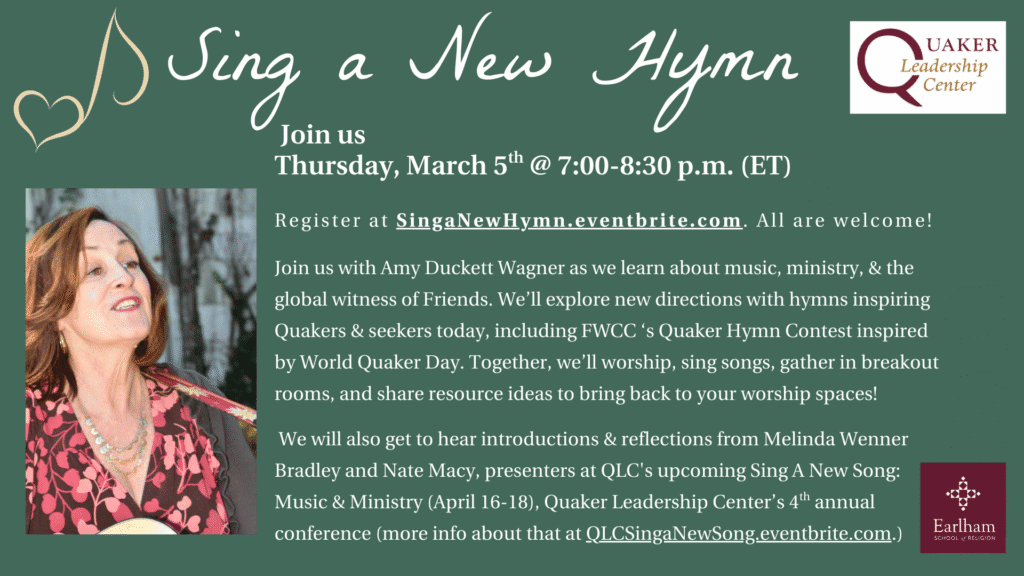 Join us as we explore new directions with hymns inspiring seekers and Quakers today. Amy Duckett Wagner leads this engaging session. Register & find out more at https://SingaNewHymn.eventbrite.com!